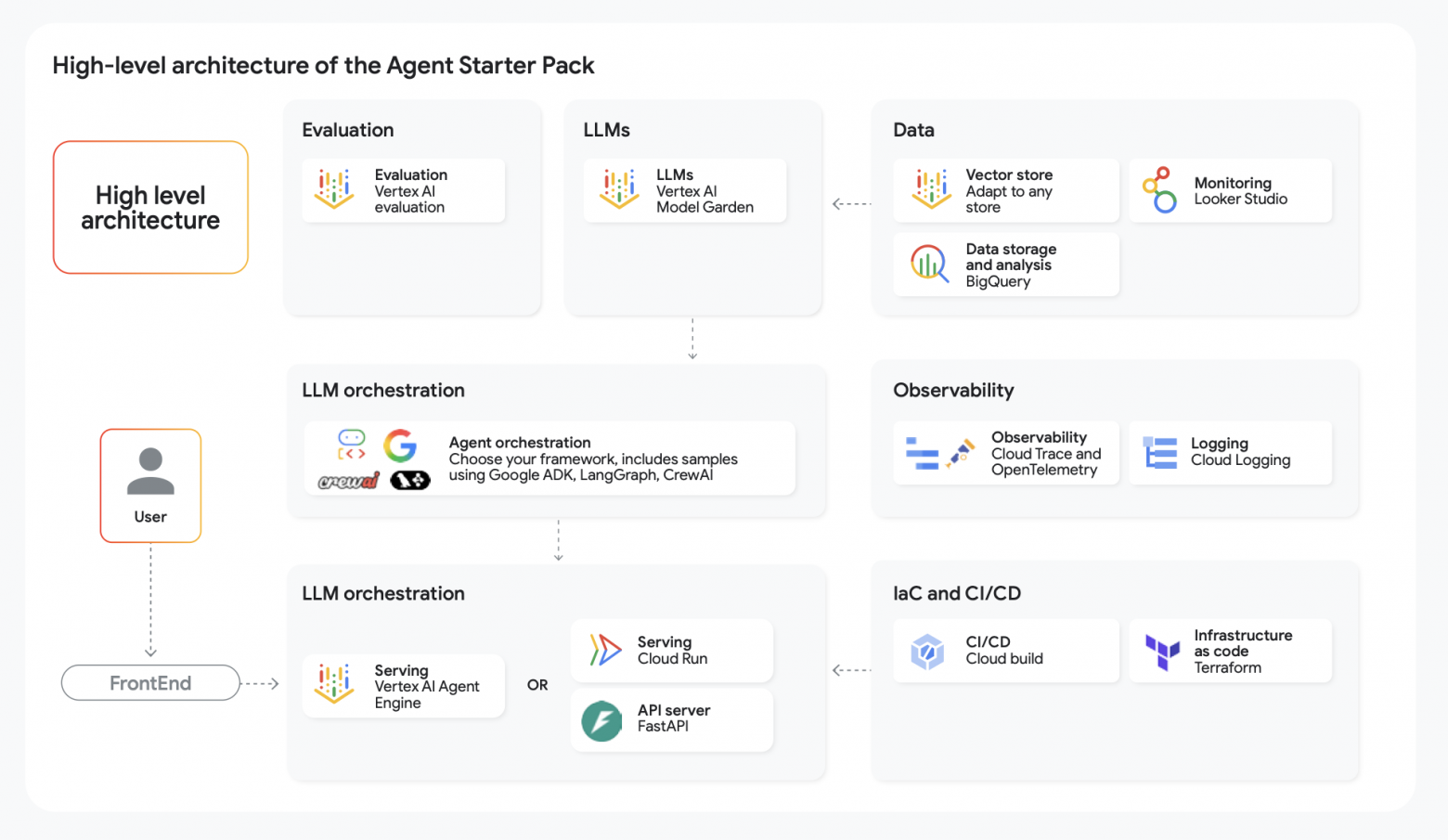 „Google“ pabrėžia: neįmanoma sukurti rimto AI agento, tiesiog pasirinkus didelį kalbos modelį (LLM). Reikalinga keičiama infrastruktūra, duomenų integracija ir patikrinta architektūra. Gairėse net yra frazė, kad gamybinės kokybės agento kūrimui reikia kur kas daugiau nei LLM pasirinkimas. Ir toliau išvardijami pagrindiniai agento komponentai: modelis, įrankiai (tools) veiksmams atlikti, orkestravimo logika (pvz., ReAct šablonas), atmintis kontekstui, sesijų saugojimo mechanizmas ir t. t.